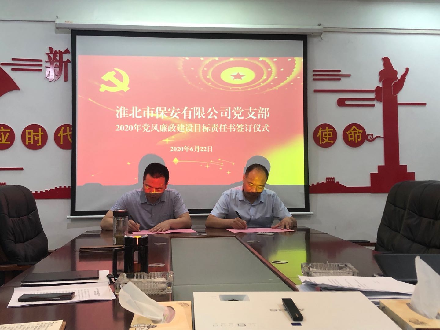 會后,保安公司黨支部舉行了2020年黨風廉政建設目標責任書簽訂儀式,支部書記與公司經(jīng)營班子,經(jīng)營班子與中層管理人員簽訂了黨風廉政建設目標責任書,在黨風廉政建設與廉潔自律方面做出的約束,通過責任書的簽訂,形成了以上率下、層層壓實責任的黨風廉政建設責任體系,進一步武裝員工思想,筑牢了拒絕腐敗的思想道德防線,增強了全體黨員干部的廉潔自律意識,確保黨風廉政建設責任落實到位,為保安公司的高質(zhì)量發(fā)展提供了保障。